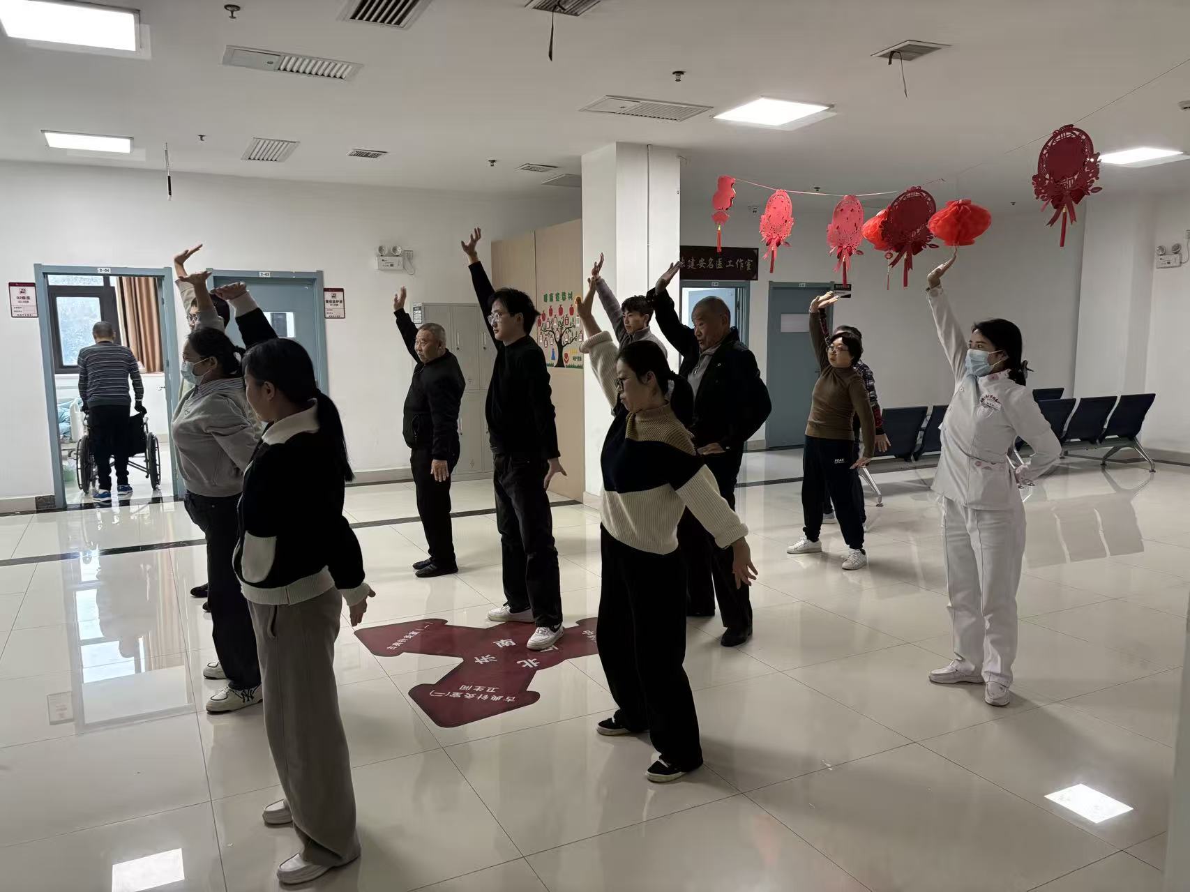 “双手托天理三焦,左右开弓似射雕……”每天清晨7:30,中医科住院部的走廊里总会响起舒缓的音乐。在医护人员的专业引导下,患者、家属与医护人员一起舒展身体,双手托天、左右开弓、调理脾胃……一个个动作徐缓而有序,配合深长均匀的呼吸,焦虑渐渐消融,取而代之的是身心的轻松与愉悦,成为了病区一道美丽的风景线。