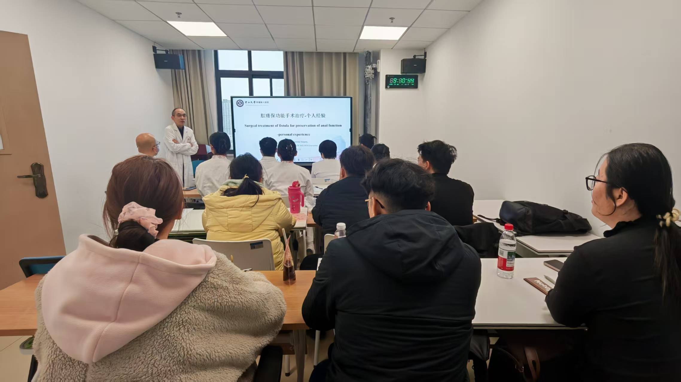 手术指导环节中,谢教授主刀演示了两台复杂肛瘘保功能手术。他边操作边讲解,针对关键步骤与操作要领进行细致剖析,无私分享多年积累的临床经验与实战技巧。通过现场观摩,我院医护人员对该类手术的规范化操作与核心理念有了更直观、深刻的认识,尤其在括约肌保护策略和瘘管精准处理方面受益匪浅,进一步夯实了微创保功能手术的理论与实践基础。