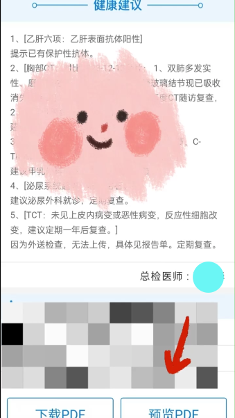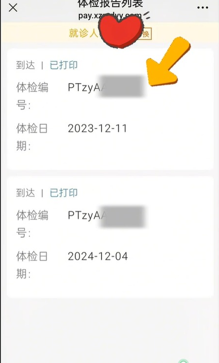 进入后会看到你之前的体检记录,每条都有体检日期(比如2023-12-11、2024-12-04)和体检编号,选你要查的那一条,点击进去就能直接预览PDF格式的体检报告啦,里面的检查结果、健康建议都能看清楚啦。