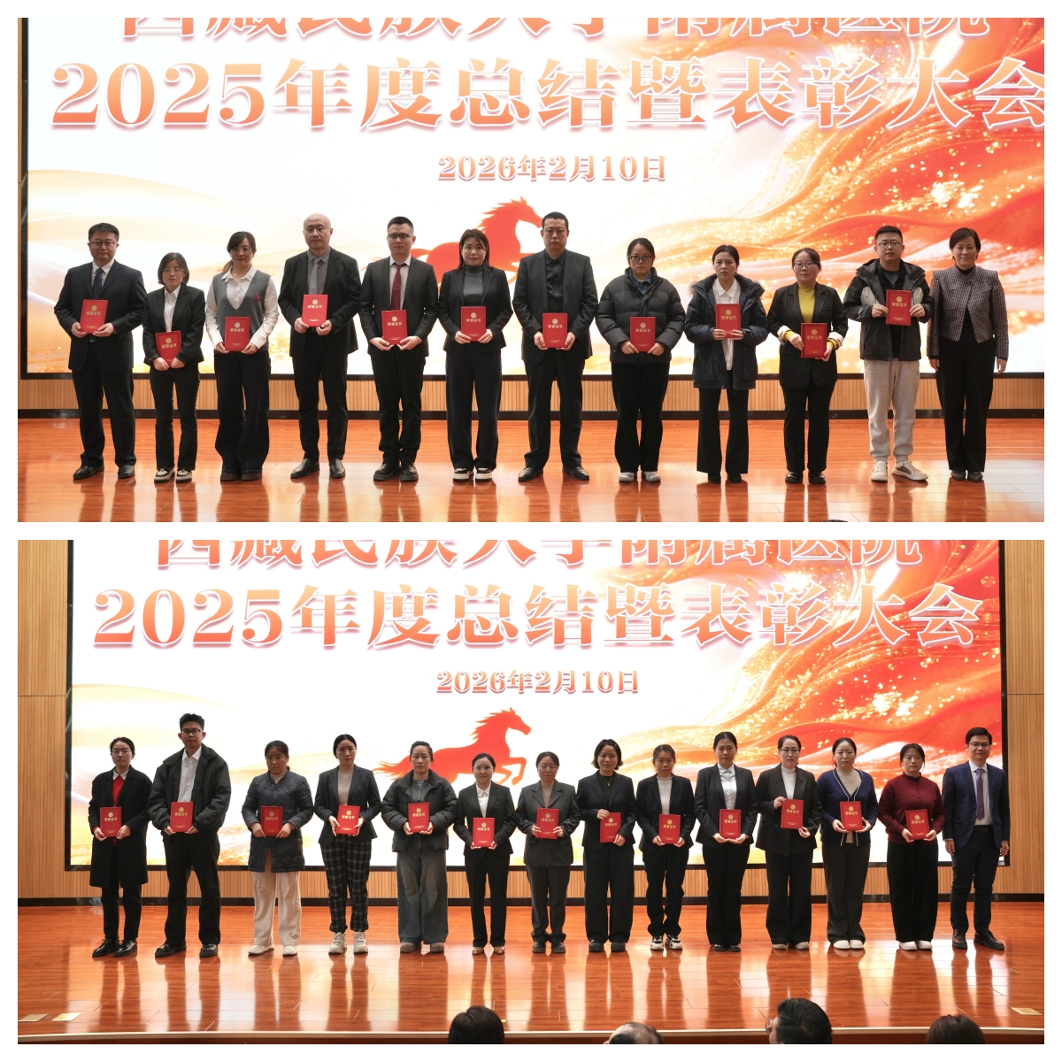附属医院党委书记、副院长宁鹏作总结发言,向所有受到表彰的集体和个人表示热烈祝贺。她表示,在学校党委的坚强领导下,在西藏、陕西两省区领导及卫生健康等部门的高度重视与大力支持下,全院上下锚定目标、砥砺奋进,成功创建三级综合医院,标志着医院在规范管理、医疗质量与服务能力等方面迈上新台阶。这一成果源于对“服务高原、支撑医学人才培养”使命的坚守,更凝聚着全体干部职工迎难而上、协同作战的辛勤付出。2026年是“十五五”开局之年,全院职工要继续锚定“三甲”目标,以“归零”心态再出发、以“赶考”状态再奋进,持续夯实内涵建设,全面提升综合实力,坚定不移走高质量发展之路。