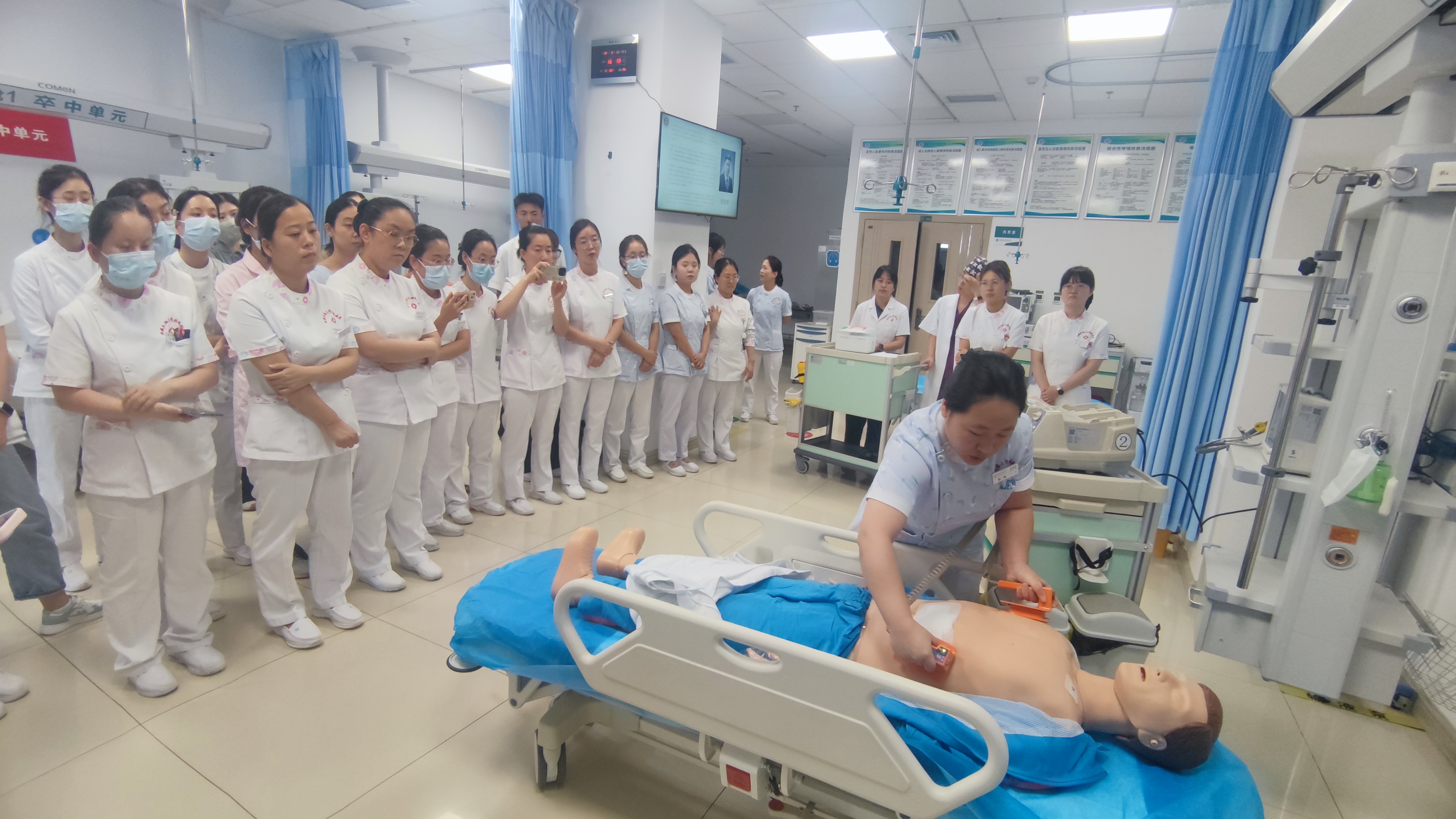 护理部组织全体应急队员在急诊科开展沉浸式操作训练,由急诊科与ICU骨干护士带教,重点演练双人心肺复苏、非同步电除颤、呼吸机及简易呼吸气囊使用等关键技能。通过规范示范胸外按压、人工通气与电除颤的协同流程,参训人员逐一进行实操练习。