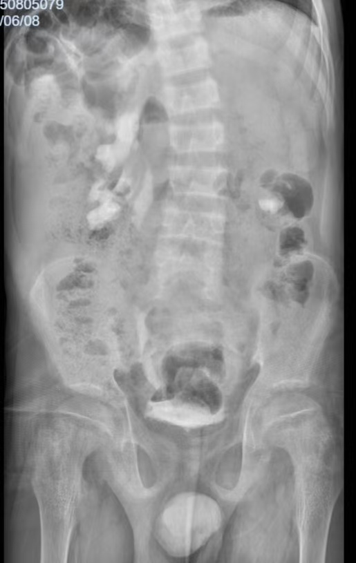 2025年7月底,该患者转诊至我院泌尿外科。文永安主任高度重视,立即组织科室诊疗团队对患者6年的复杂病史进行全面梳理,并制定了针对性的检查方案。通过膀胱造影检查,精准评估患者上尿路动力情况及膀胱收缩功能;同时,指导护理团队同步记录患者排尿日记,全面、细致掌握患者病情细节。凭借丰富的临床经验及严谨的病例分析判断,泌尿外科团队突破了此前的诊断局限,最终明确诊断为 “膀胱输尿管反流、肾盂积水、肾功能不全、代谢性骨病、尿道下裂、先天性膝外翻”,为后续精准治疗方案的制定奠定了关键基础。