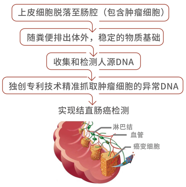 其检测原理基于肠道生理特点:肠道上皮细胞(包括可能存在的肿瘤细胞)会自然脱落到肠腔,随粪便排出体外,这为检测提供了稳定的物质基础。通过SDC2+TFPI2双基因检测技术,可精准捕捉粪便中脱落癌细胞的DNA变异,进而实现结直肠癌检测。