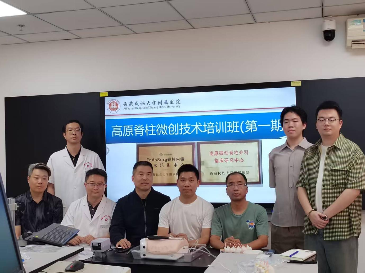 2025年8月31日,西藏民族大学附属医院成功举办“高原脊柱微创技术培训班(第一期)”。本次培训由中组部第十批援藏干部、中山大学附属第三医院脊柱外科主任医师、时任附属医院院长张良明教授牵头,依托医院“高原微创脊柱外科临床研究中心”及先进的模拟仿真教学平台,采用“理论示教+实操训练”相结合模式,旨在提升骨科医护团队脊柱微创诊疗能力。