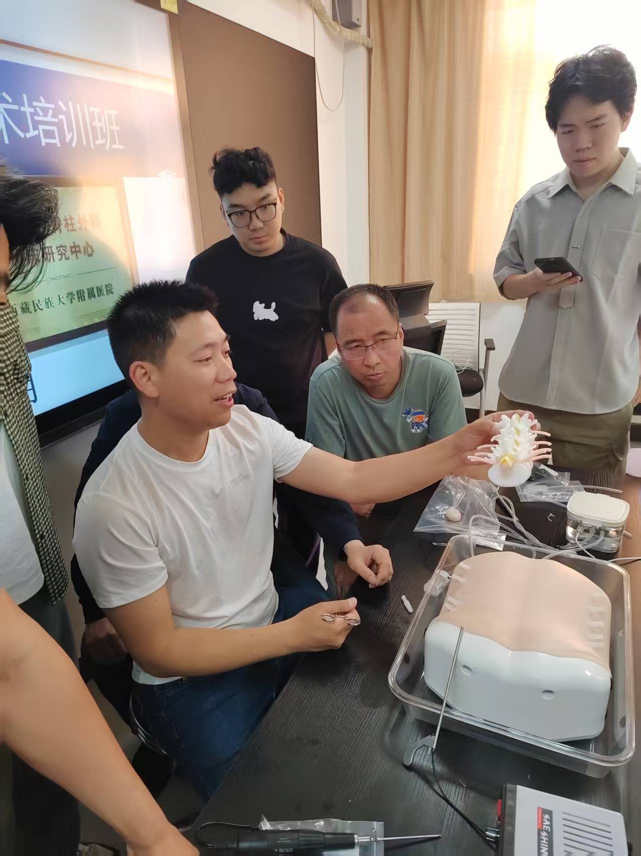 高原地区脊柱疾病发病率较高,传统手术创伤大、恢复慢,而微创技术具有切口小、出血少、康复快等优势,日益成为临床发展方向。为破解技术推广中的实操瓶颈,附属医院充分发挥研究中心与模拟教学设备优势,构建高度仿真的临床训练环境,增强培训的针对性与实用性。