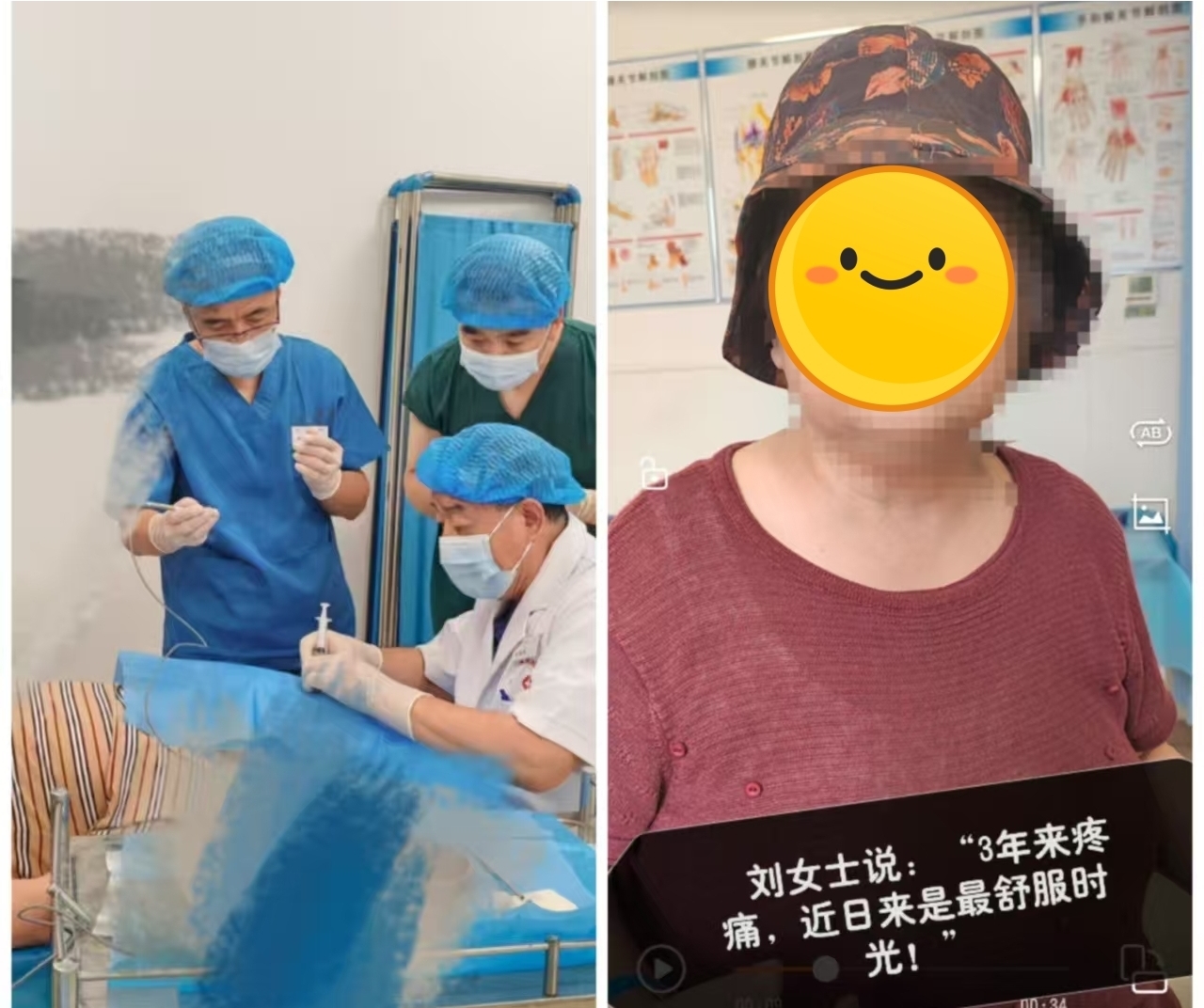 术后效果立竿见影:第一天疼痛初现缓解;第三天VAS评分降至1-2分,由重度转为轻度,日常活动完全恢复。“这三天是我三年来最舒服的日子,吃饭香、睡觉沉!”刘女士高兴地说。