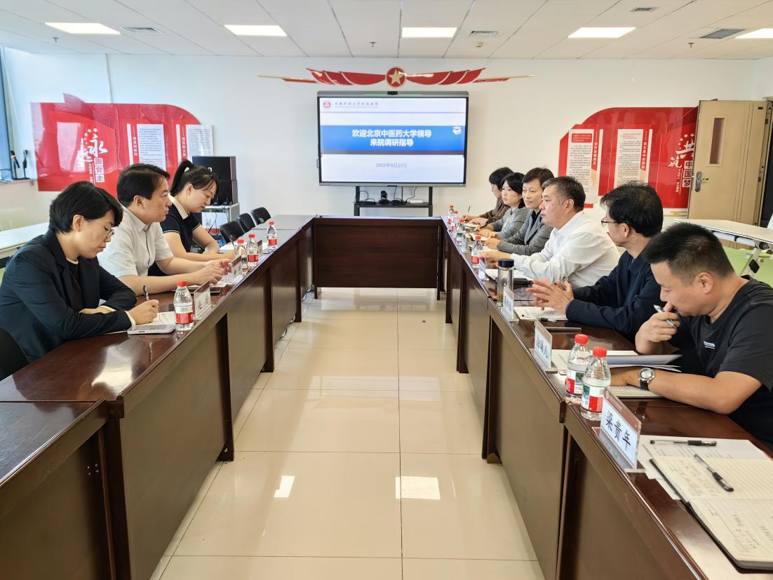 为深化北京中医药大学与我校交流合作,加强人才引进,9月23日,北京中医药大学招生与就业处处长申堃、中医学院党委副书记赵静、招生与就业处就业科科长于欢一行3人来我校座谈交流。学校党委常委、副校长张继旺出席并主持会议,医学院党委书记周伟团、附属医院党委书记宁鹏,党委组织部、招生就业处、附属医院代表同志参加。