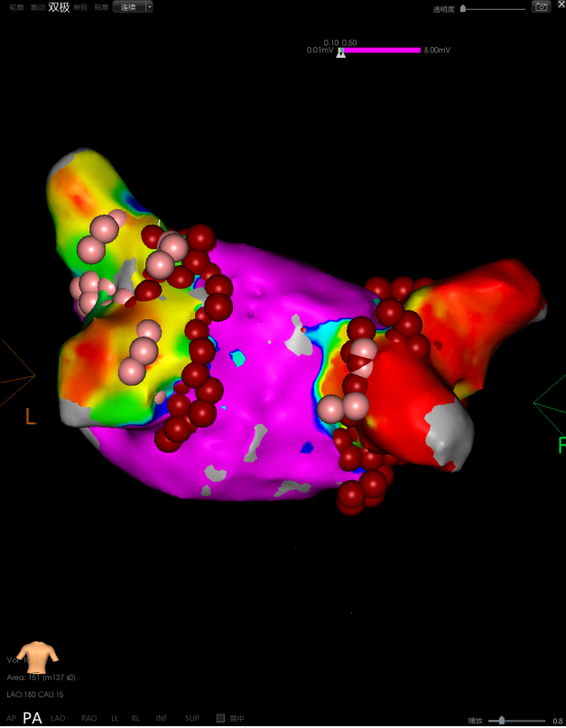 术中,专家团队在三维标测系统导航下精准构建左心房模型,运用环形脉冲电极消融导管快速完成肺静脉及上腔静脉电隔离。手术全程精准、高效,展现了医院在复杂心律失常介入治疗方面的雄厚实力。